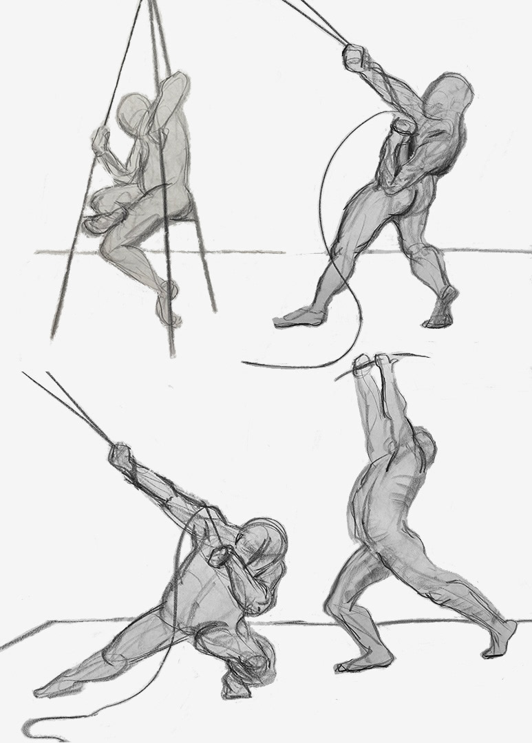 Taking sketches from life drawing and incorporating them into mini storyboards